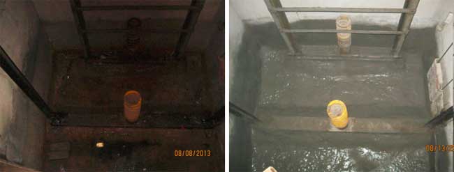 根据现场条件,为降低对周边环境的影响,缩短工期,降低施工成本,保证无渗漏整体效果,决定采用华鑫高空的专业内防水技术,特种材料,设计结构补强加固、抗渗堵漏的处理方案,即不进行外部的开挖,从室内施工,采用YYA防水抗渗、YY16闪凝堵漏补强、YY17止水抗渗、YYR伸缩缝专用密封堵漏、YY36防水抗裂密封等特种耐候抗渗材料施工,构建一个高强度的多重防水抗渗系统,彻底解决渗漏水的问题。